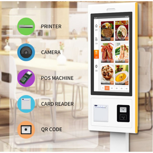 22"-os kijelzővel épített szabadon álló önkiszolgáló kioszk. Vezérlését egy PC végzi Android operációs rendszerrel. Beépített Wifi és kábeles LAN kapcsolat. Beépített blokk nyomtató és QR kód és NFC olvasó.