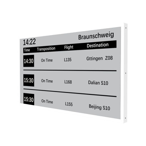 Falra rögzíthető, nagy méretű E-ink ipari kijelző, melyen a digitális média tartalmak jeleníthetőek meg fekete-fehérben. A 31,2 hüvelykes, fali szerelhető fekete-fehér E-ink képernyő környezetbarát bistabil technológiát alkalmaz a megjelenítéshez, rendkívül alacsony energiafogyasztással.