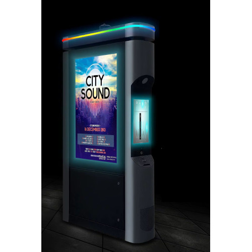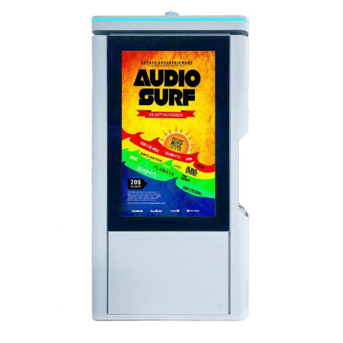 2 db 55"-os FullHD felbontású kijelzővel épített szabadon álló kioszk, főleg reklámok, oktató anyagok és videók megjelenítésére. A 2 LCD a készülék két ellentétes oldalán helyezkedik el, így a futó reklámok és egyéb tartalmak mindkét irányból láthatóak. Vezérlését 2 db teljes értékű Android számítógép végzi, így a 2 oldal teljesen független egymástól. Nincs ügyféloldali érintésvezérlés, a néző nem tud beavatkozni a futó alkalmazásba. A készülék rövidebb oldalán pedig 1 db 22"-os érintőkijelző lett elhelyezve, mellyel interaktivan lehet használni a kiválasztott rendszert. Beépített QR és vonalkód olvasó valamint webkamera.