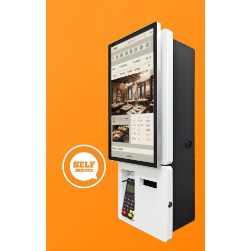 22"-os kijelzővel épített falra szerelhető önkiszolgáló kioszk. Vezérlését egy teljes értékű PC végzi Linux vagy Windows operációs rendszerrel. Beépített Wifi és kábeles LAN kapcsolat. Beépített blokk nyomtató és QR kód és NFC olvasó.